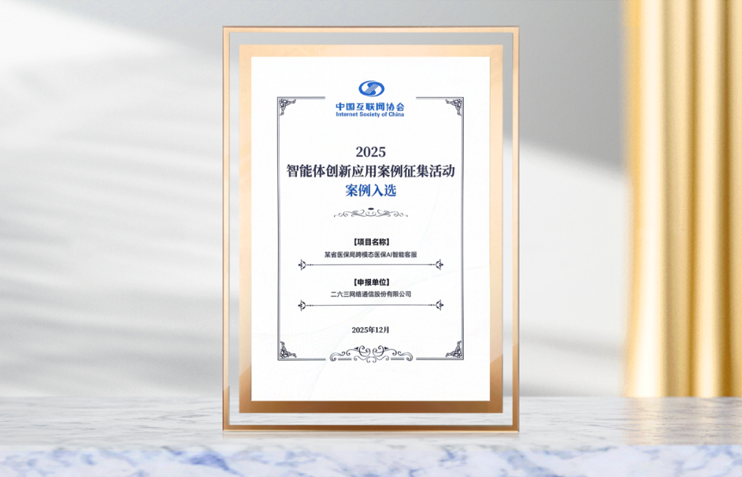 与此同时,大会同期发布的智能体创新应用案例中,263集团报送的“某省医保局跨模态医保AI智能客服”案例成功入选并获颁荣誉证书。该案例不仅印证了263智能体应用方案的实用性与创新性获得了市场与行业的高度认可,也生动展现了AI技术从理论探索走向产业应用的转化路径。